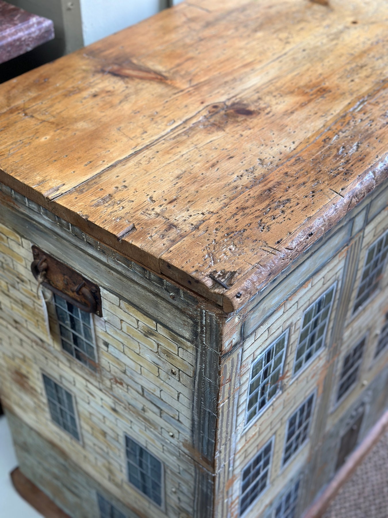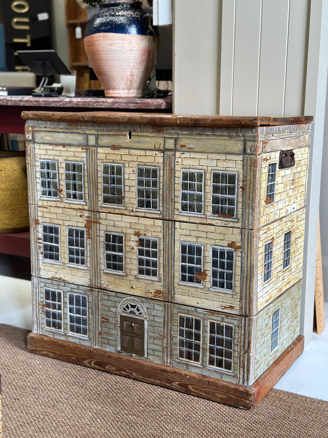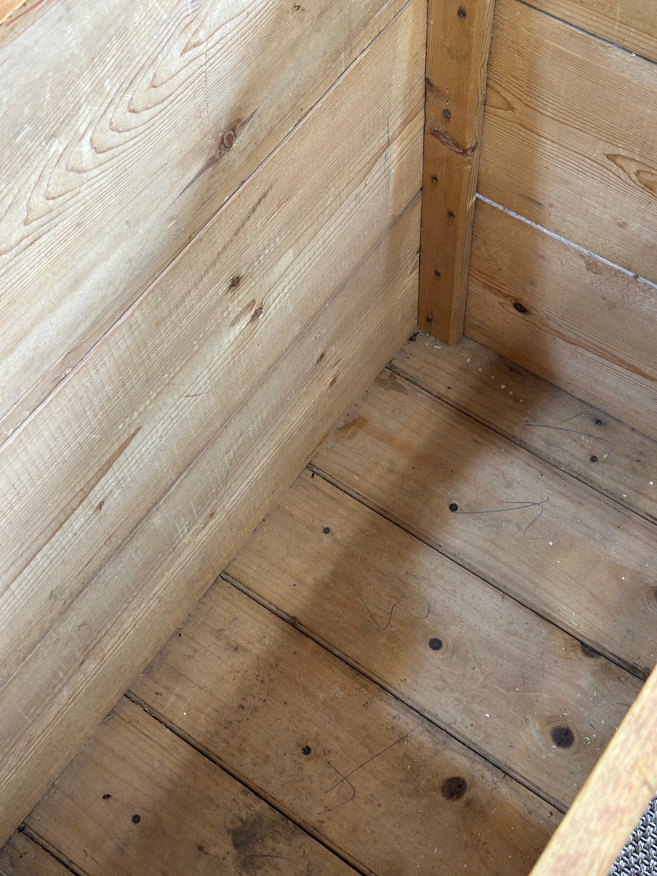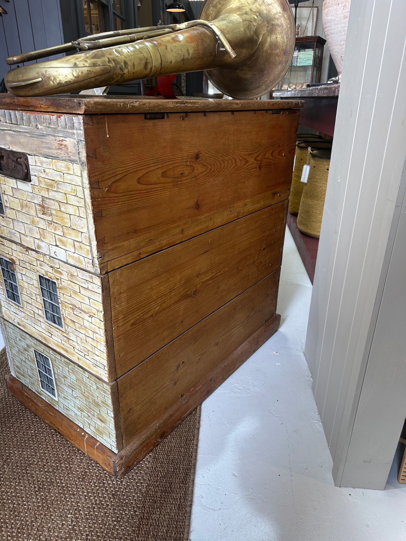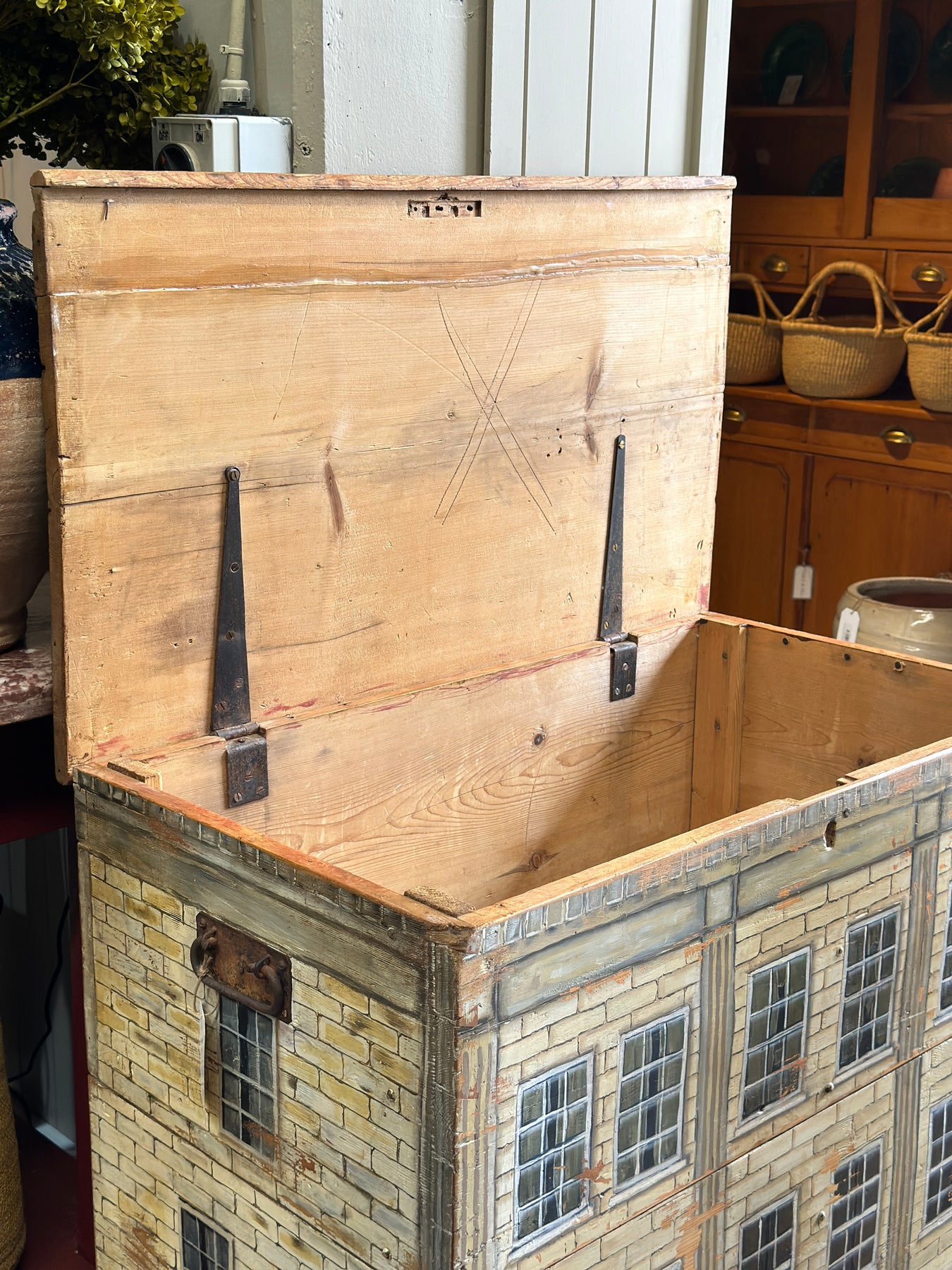 Large hand-painted antique English box. Quite deep - perfect for blankets, bags, cushions etc. otherwise a lovely console!